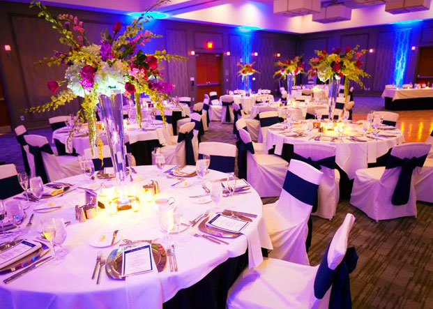 Banquet setting with garden arrangements